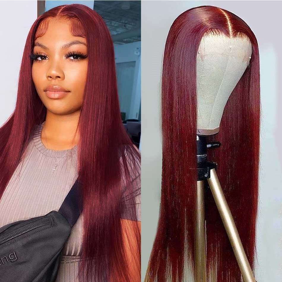 SUPER DEAL ! 99j Burgundy Colored 13x6 Lace Front Human Hair Wigs
