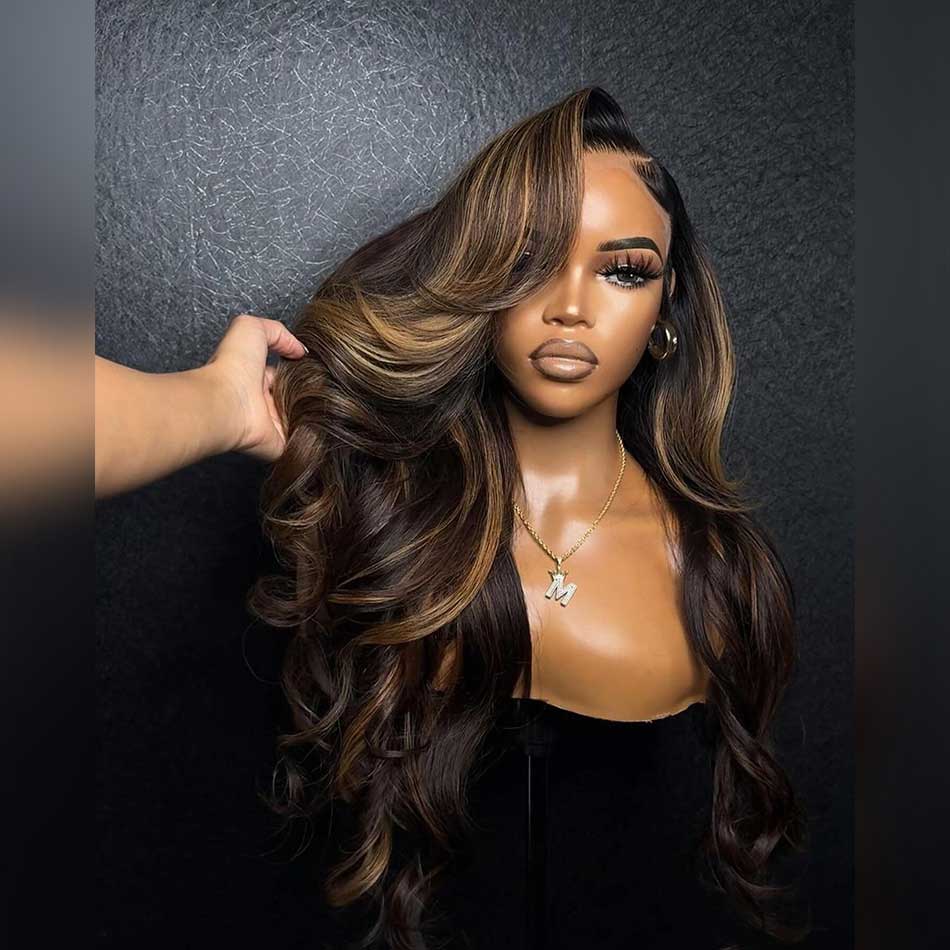 Premium 10A 210% Density Ombre Black Roots Highlight Brown Color 13x6 Lace Front Wig 6x5 Glueless Ready To Go Human Hair Wigs