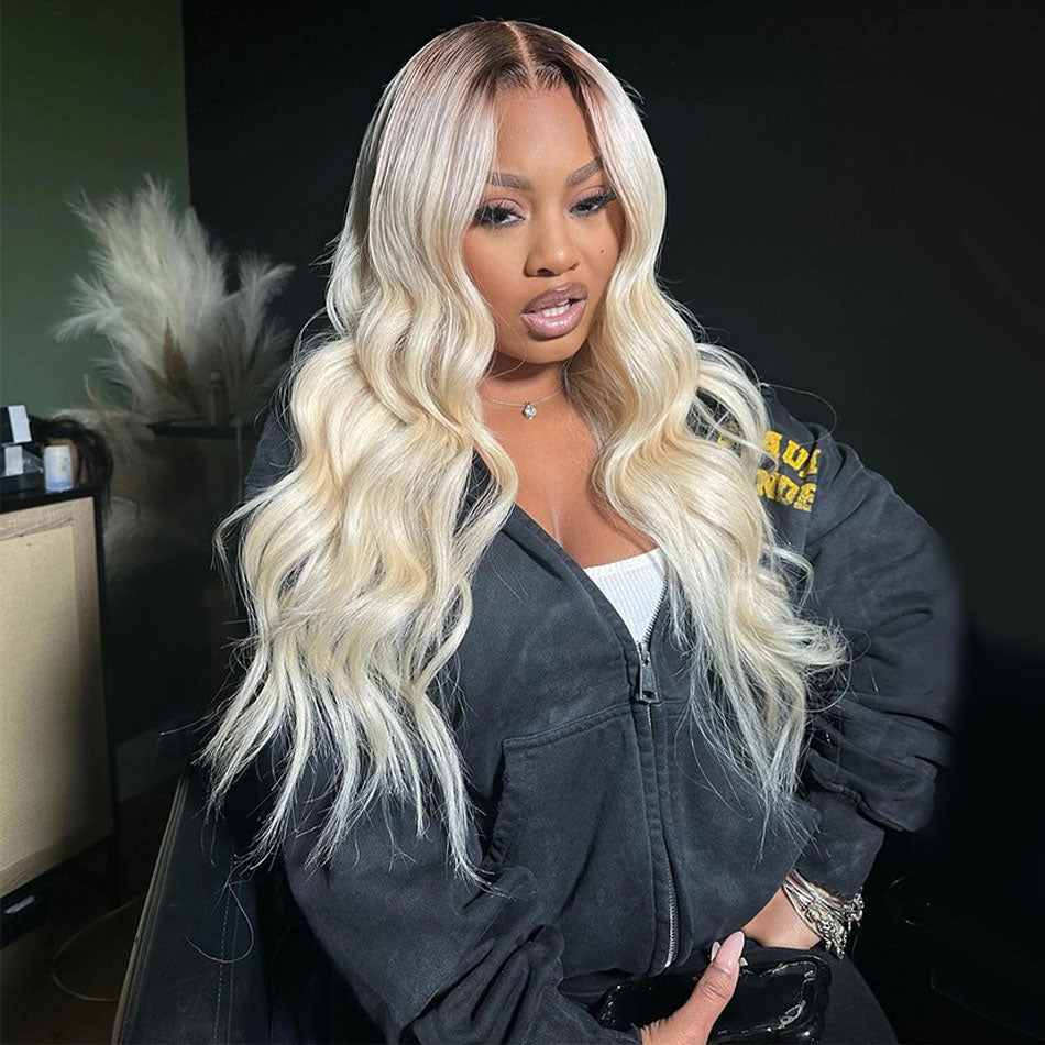 250% Density Ombre Platinum Blonde Colored HD Transparent 13x6 Lace Front Human Hair Wigs Brazilian Body Wave