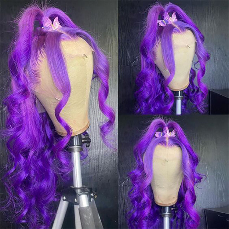 Purple Colored HD Transparent 13x6 Lace Front Human Hair Wig